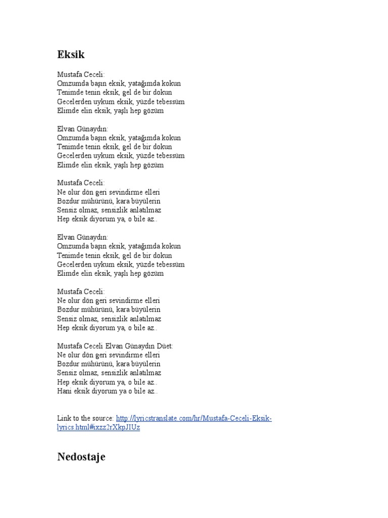 Yatağımda Kokun Eksik. eksik original version testo mustafa ceceli feat elvan gunaydin mtv testi e canzoni